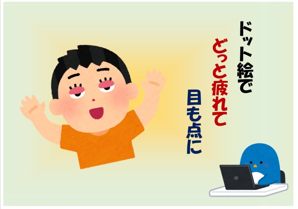 ドット絵ってなに?って感じで作り始めると、だんだん面白くなってきました。