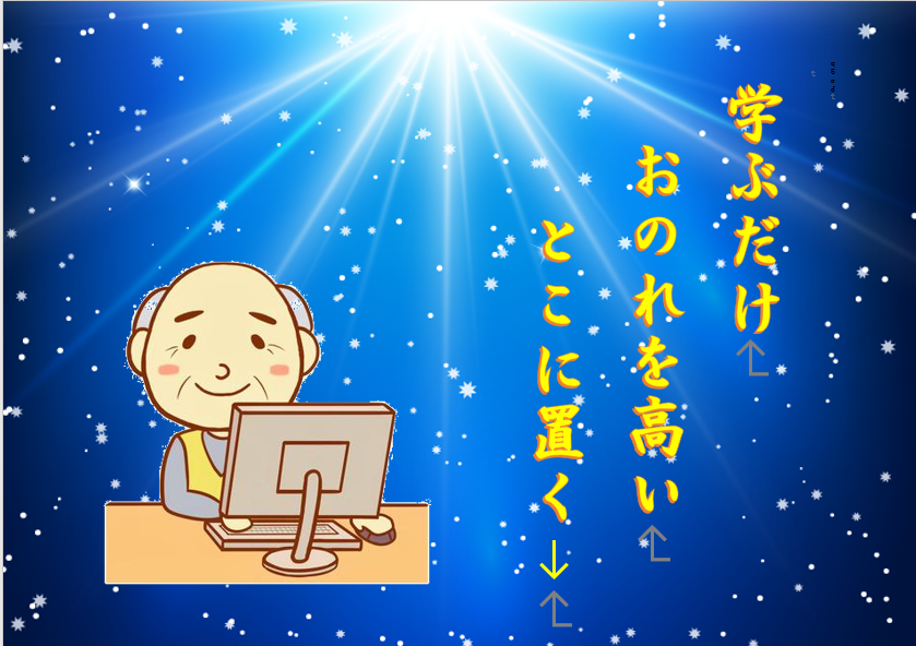 八十路も半ば過ぎ、なかなか授業が高度になり、ついていけないことが多くなりましたが、まだまだと少しでも自分を高めようと教室に通う光輝幸齢者です。